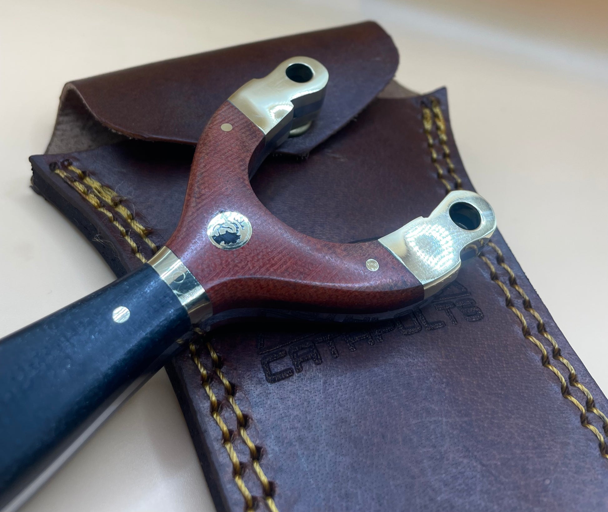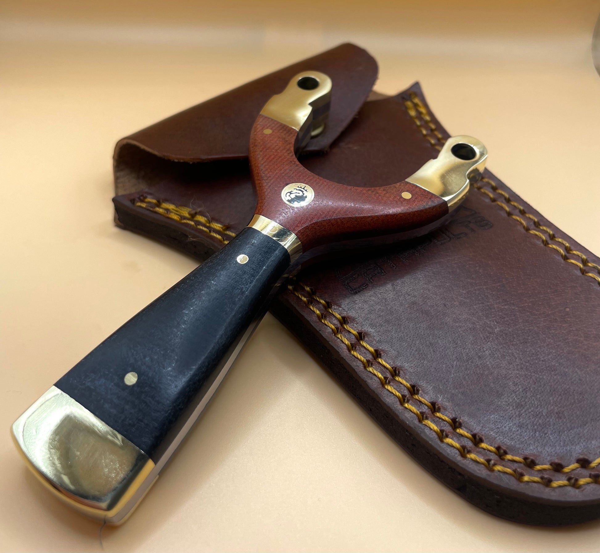 scaled in red micarta , black micarta & brass